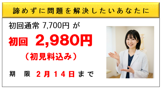 そんなあなたに向けて初回限定特典 体が変化するのを実感して頂きたいので 初回は特別価格での施術を実施しています。 |